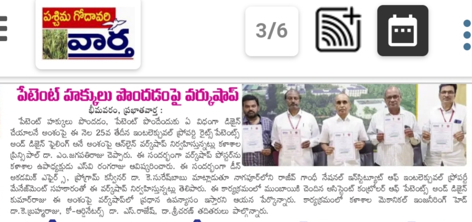 Controller of Patents and Designs at Mumbai. HOD of Mechanical Dept Dr. Brahma Raju,