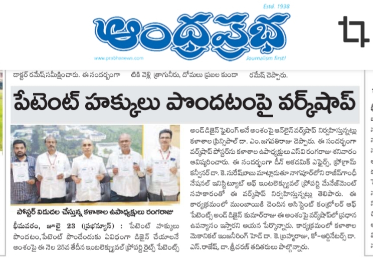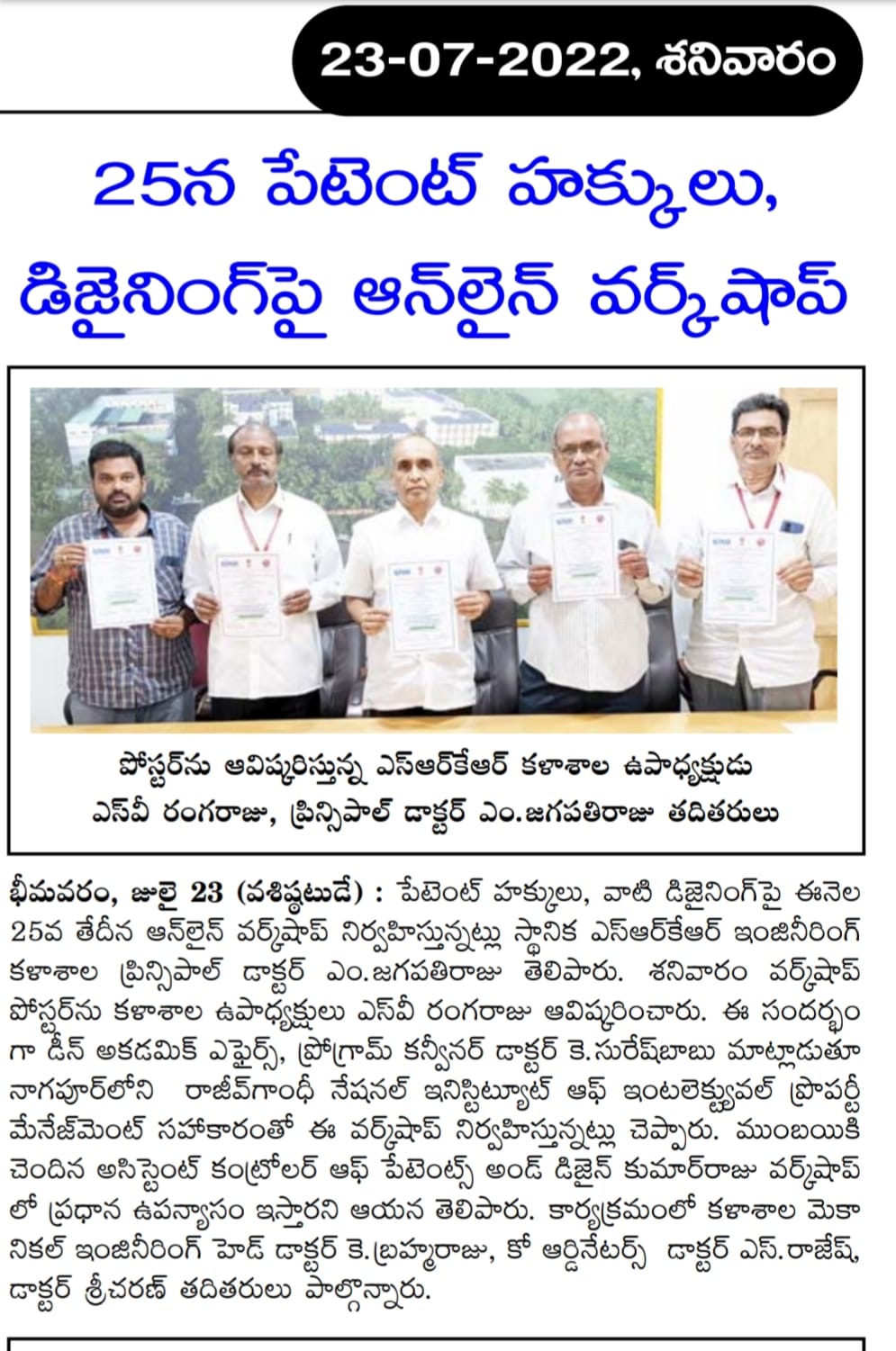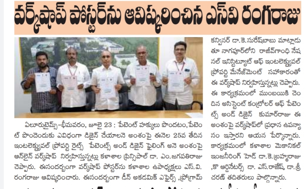 Property Rights, Patents and Design Filing' on 25-07-2022, Principal of SRKR Dr. M. Jagapathi Raju