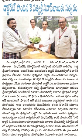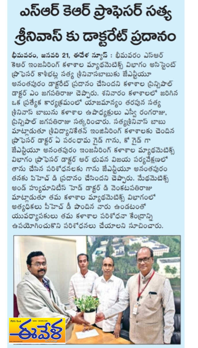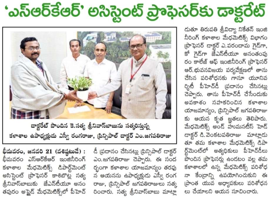 received his doctorate from JNTU, Anantpur in the field of Applied Mathematics, Principal of SRKR