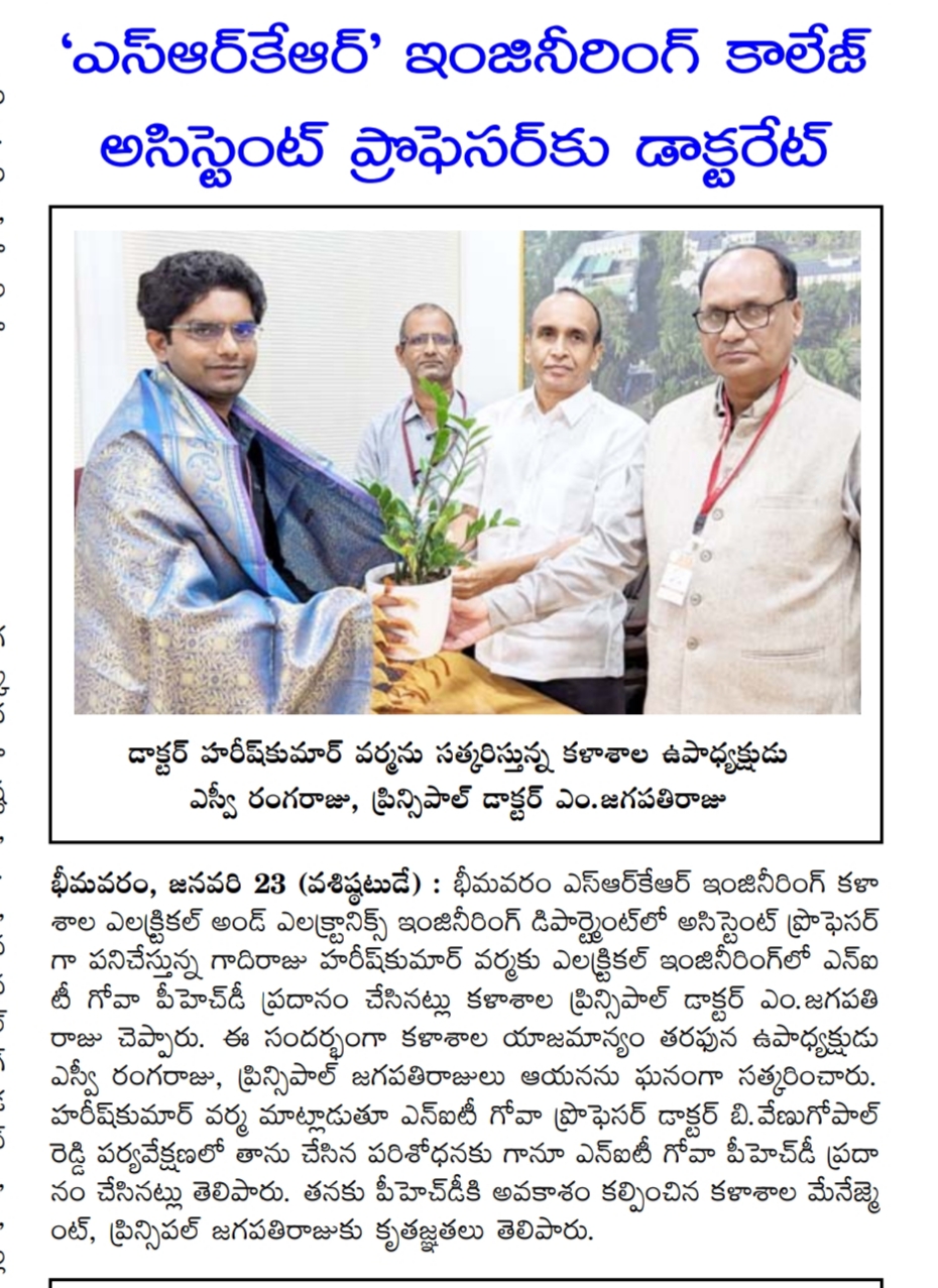 Assistant Professor in the Dept of EEE, Mr. Gadiraju Harish Varma had received his Ph. D from NIT