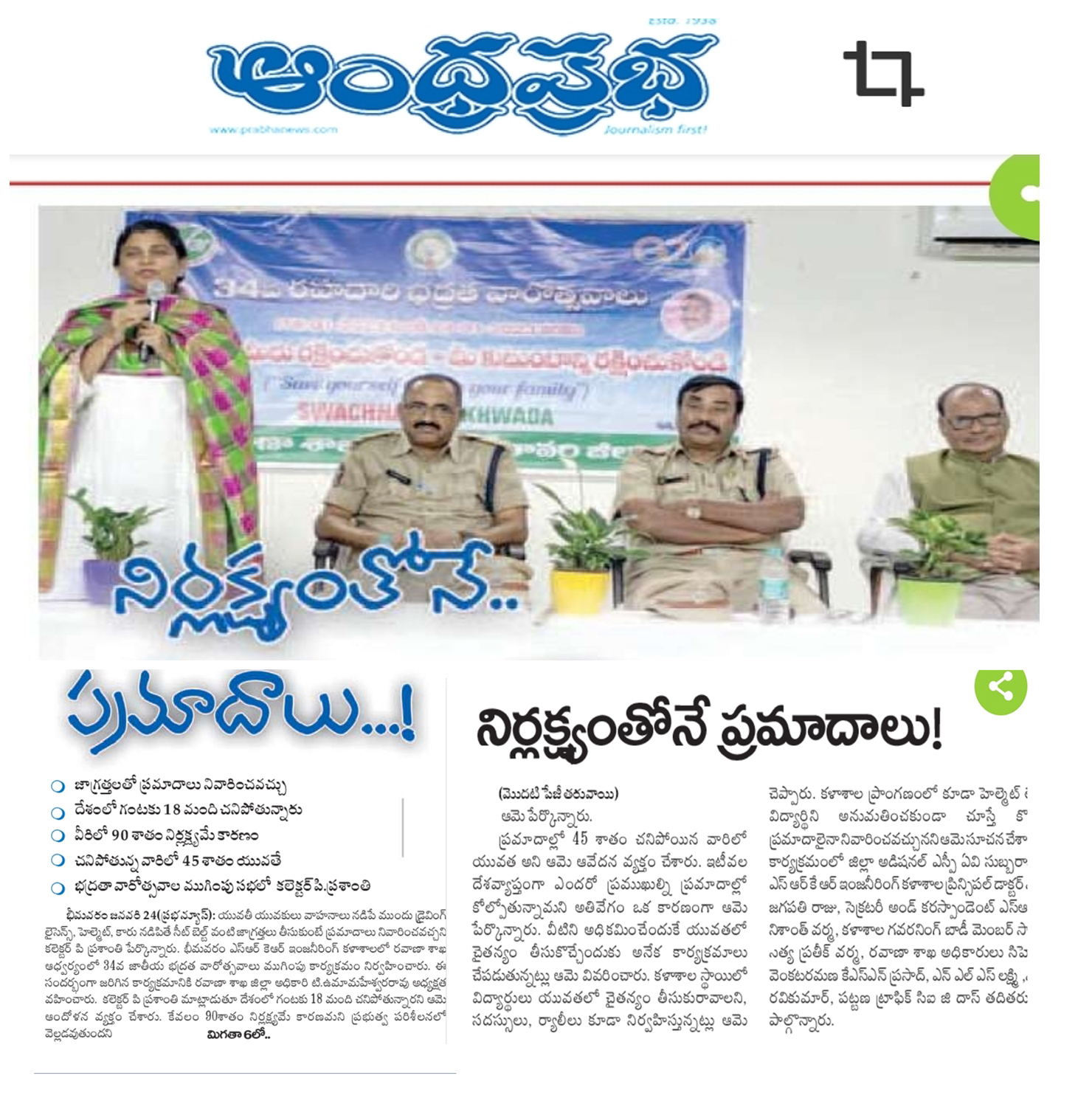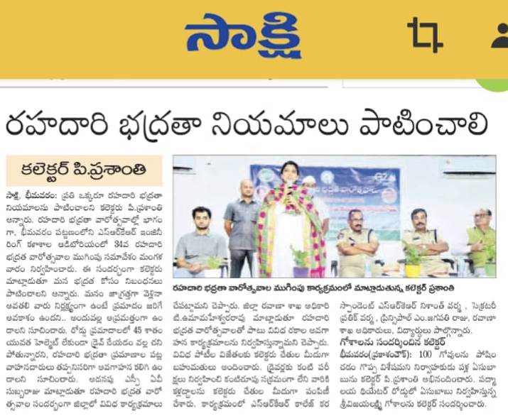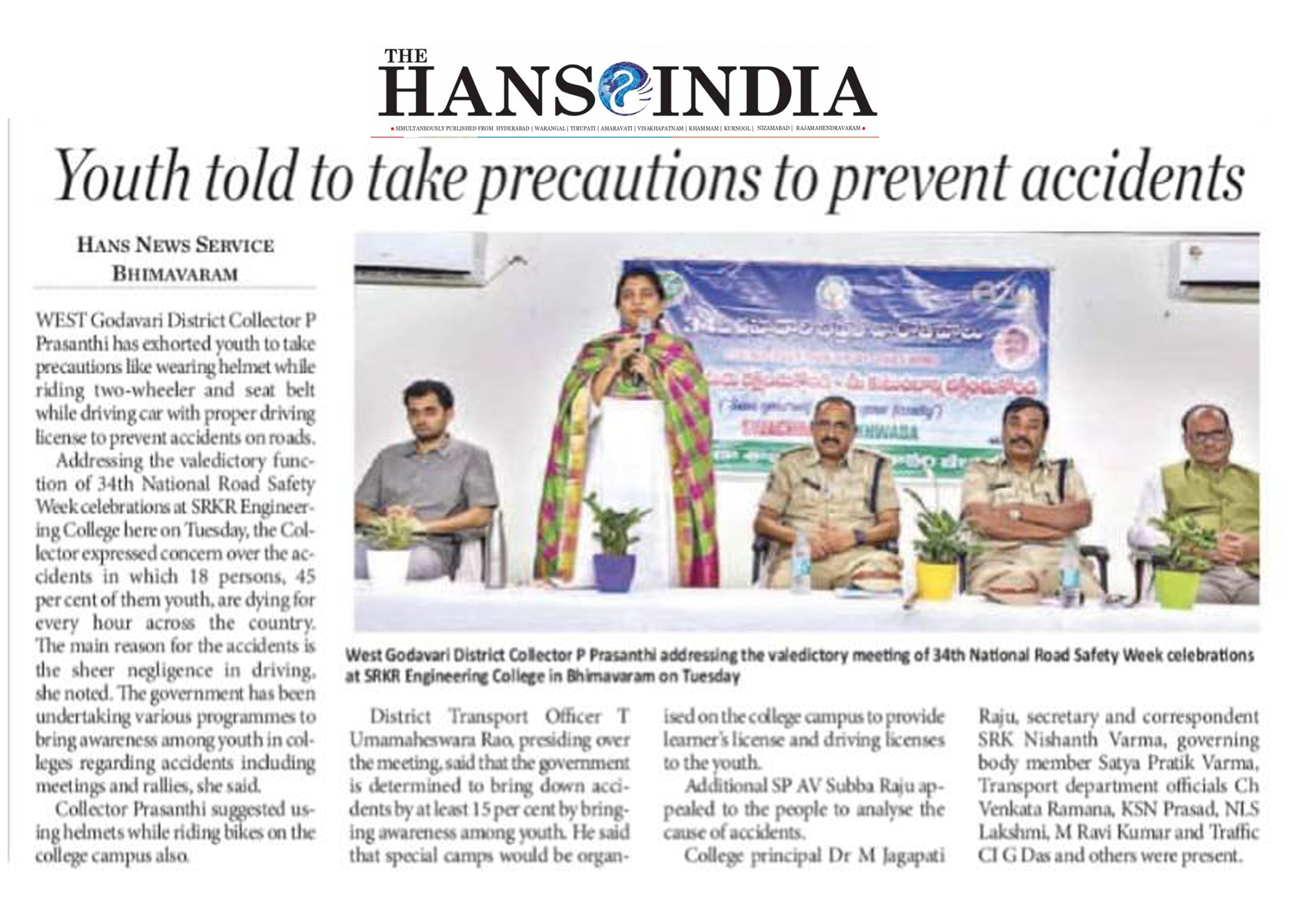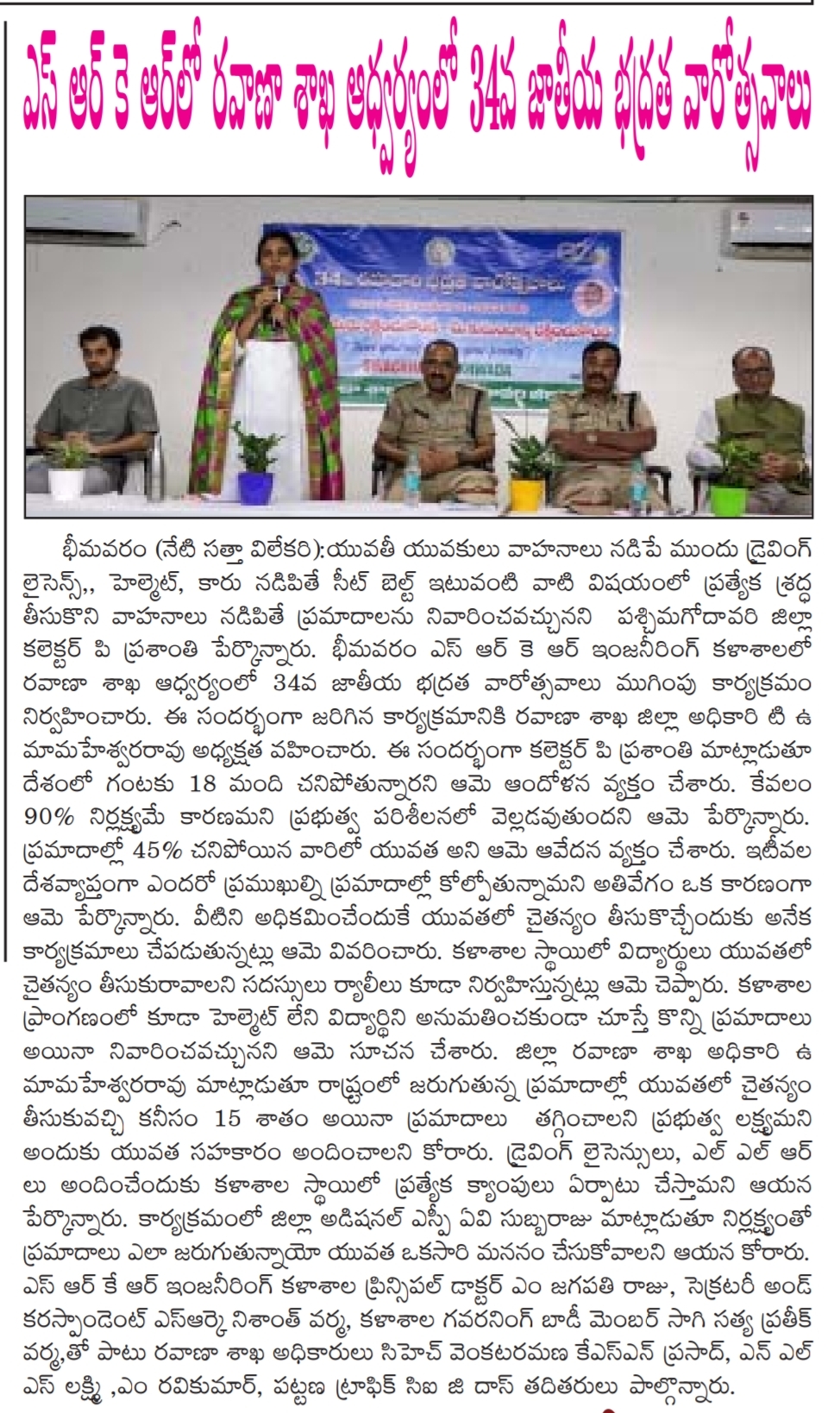 34 th Road Safety Week Valedictory programme was held at SRKR auditorium on 24 th January, 2023.