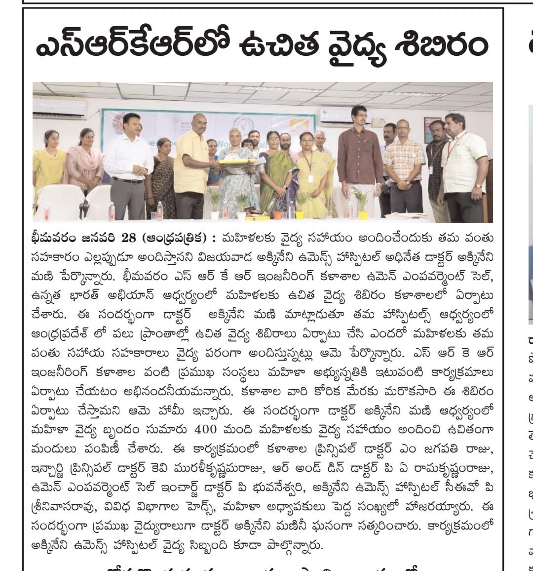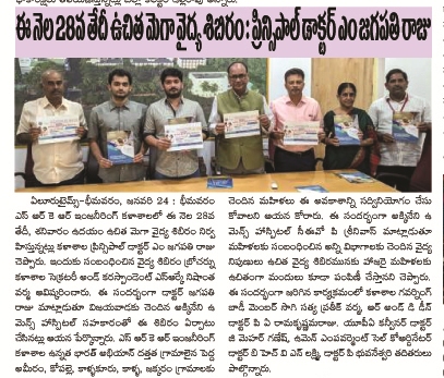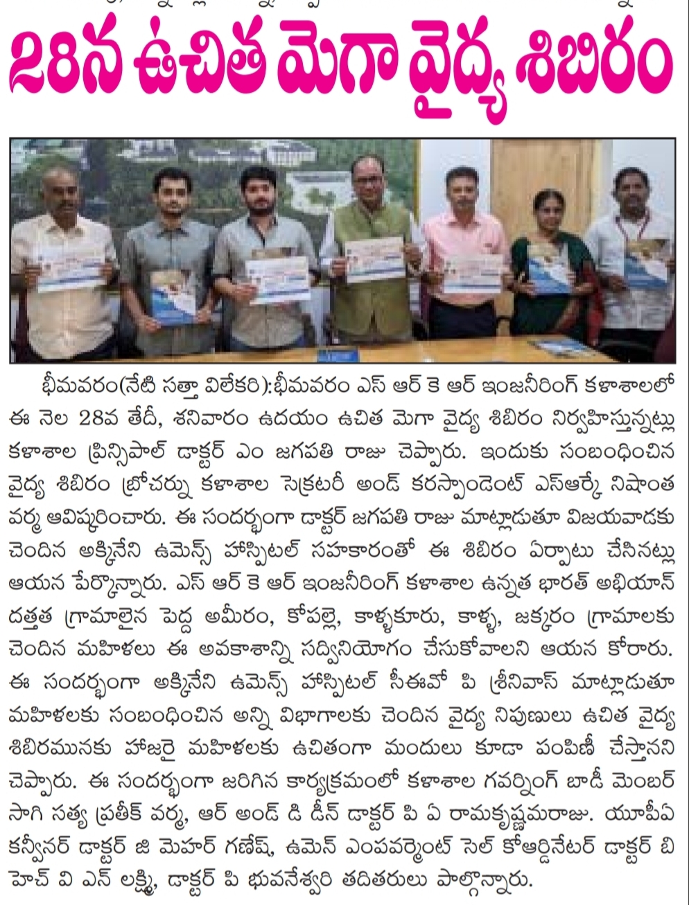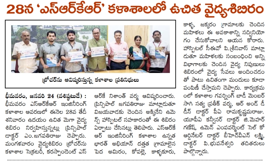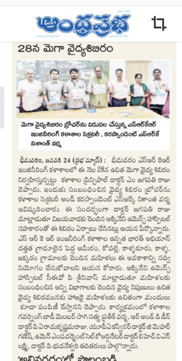 A mega health camp was being organised by the SRKR Engg College on 28 th January Morning in the