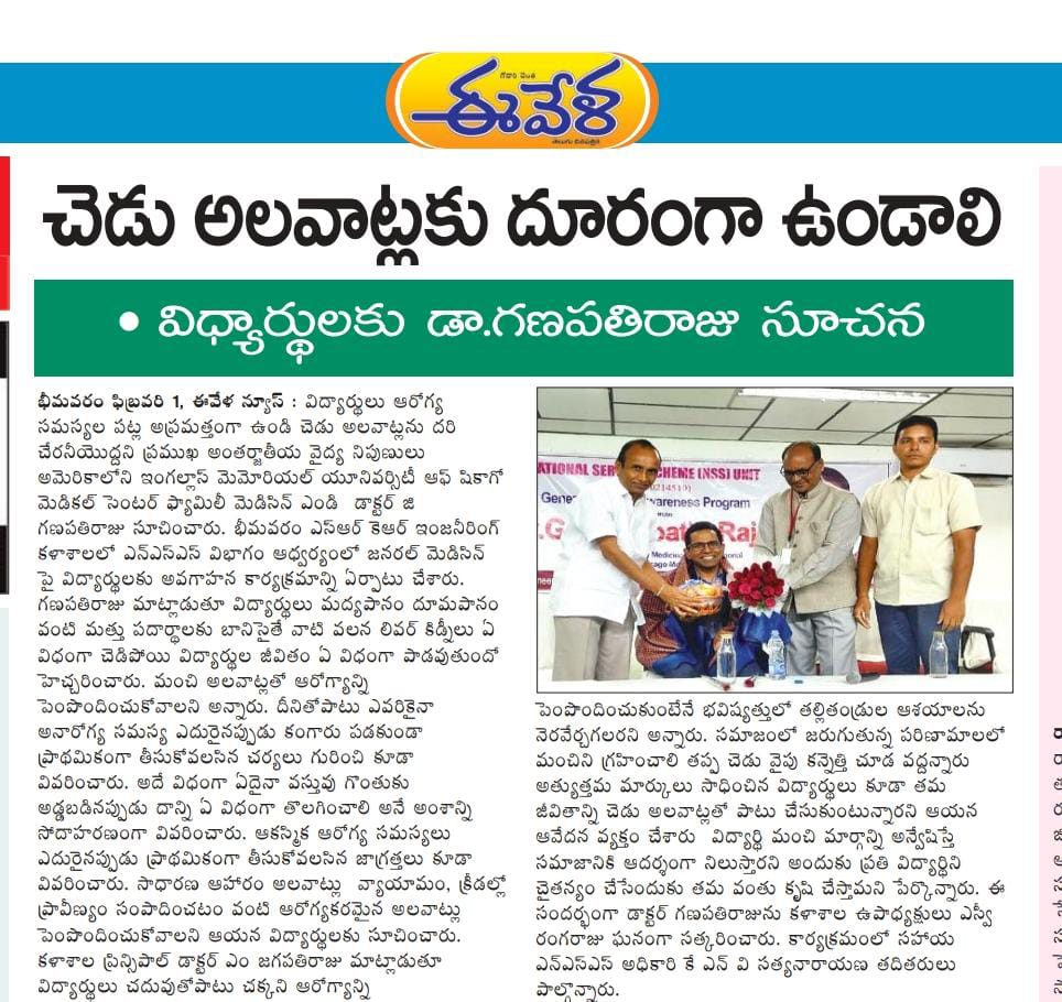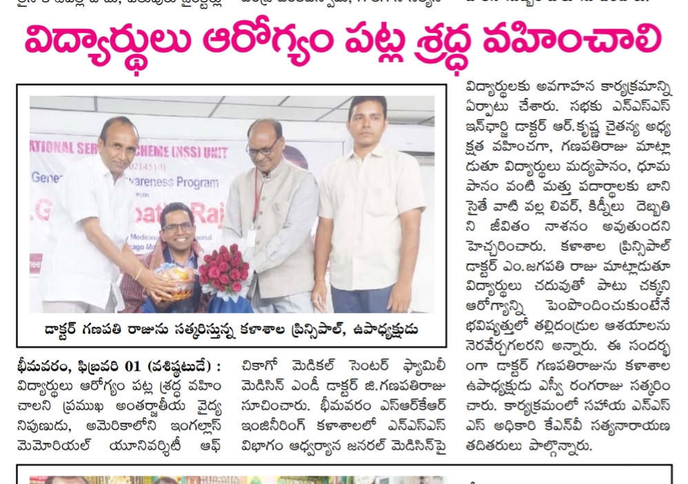body parts gets affected and the lives will be ruined. Principal of SRKR, Dr. M. Jagapathi Raju had said