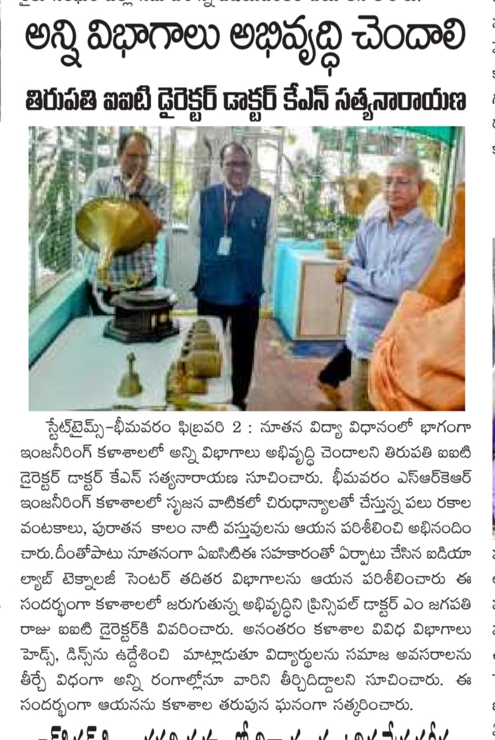 IIT Tirupathi Director Dr. KN Satyanarayana had visited SRKR Engg College. He visited ‘SRUJANA