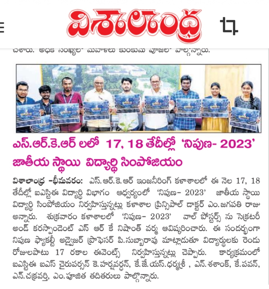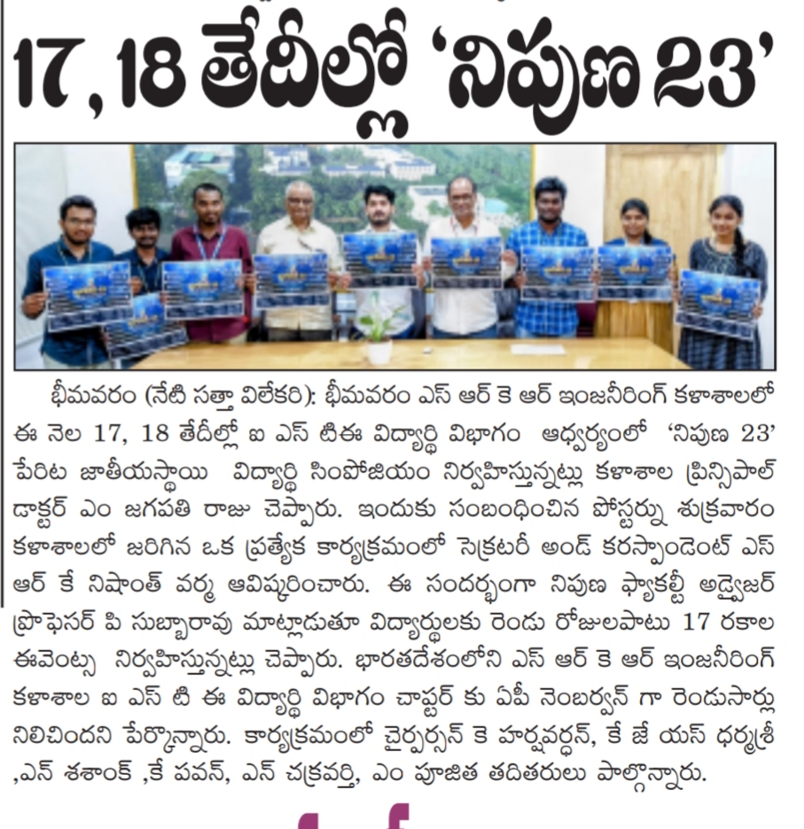 The ISTE Student Chapter at SRKR is conducting National Level Student Symposium NIPUNA-23 on