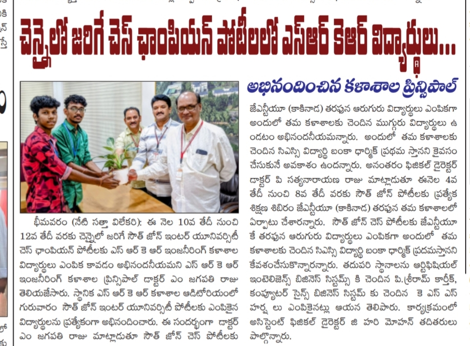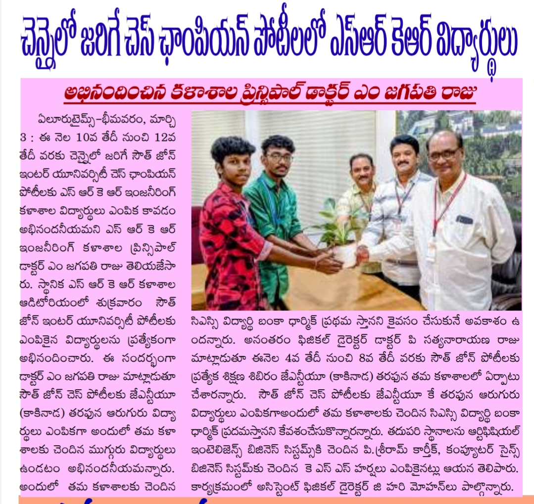 SRKR students had been selected for south zone inter university chess competitions that re going to