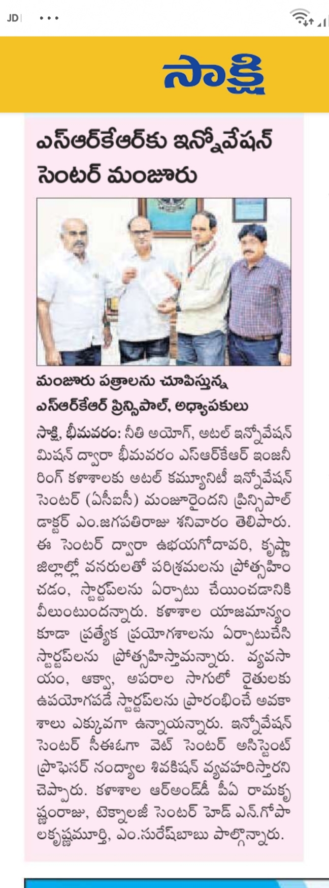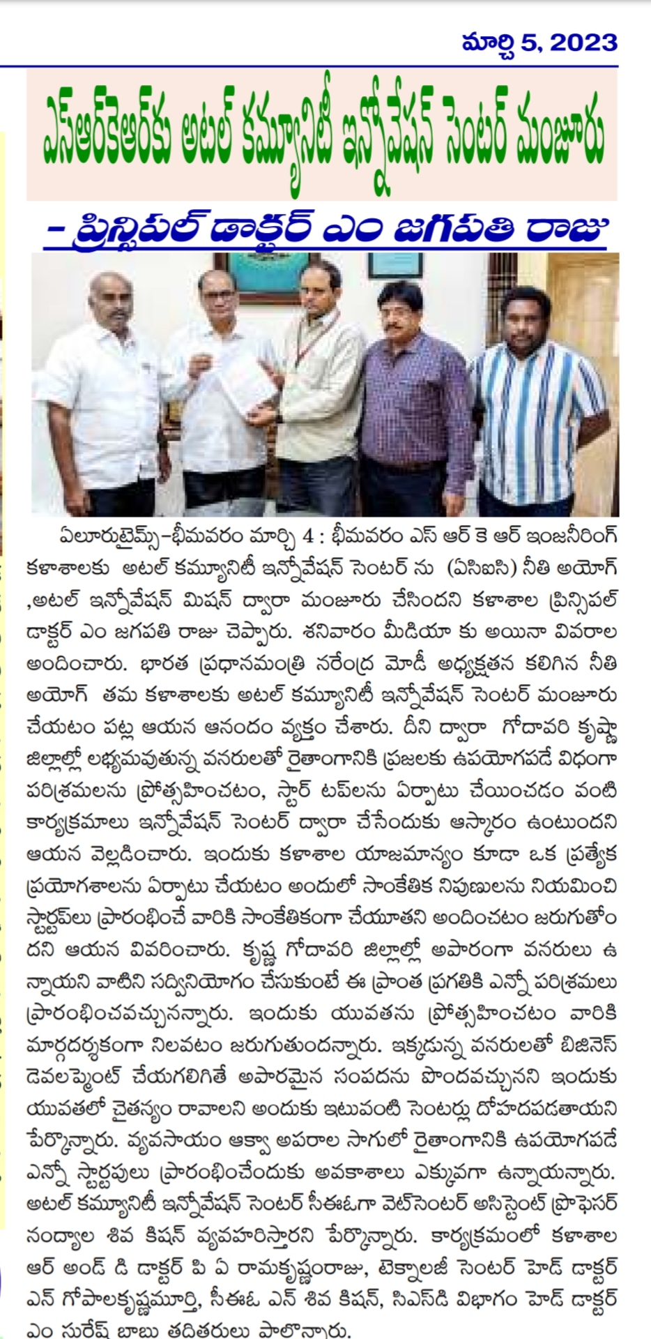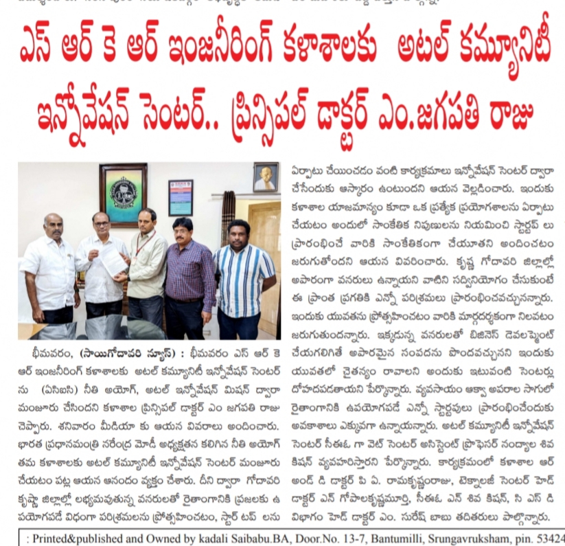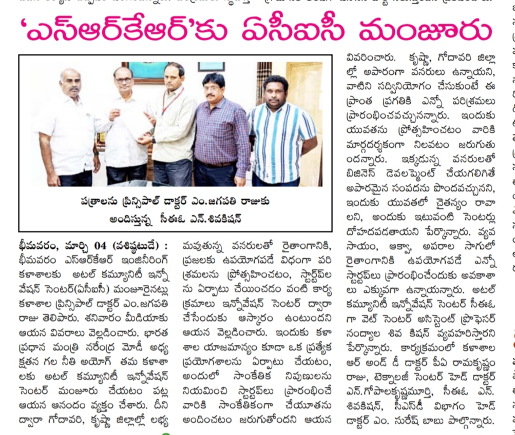 Atal Community Innovation Centre was sanctioned for SRKR Engg College through NITI Aayog and