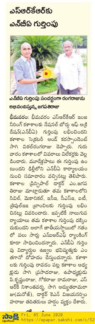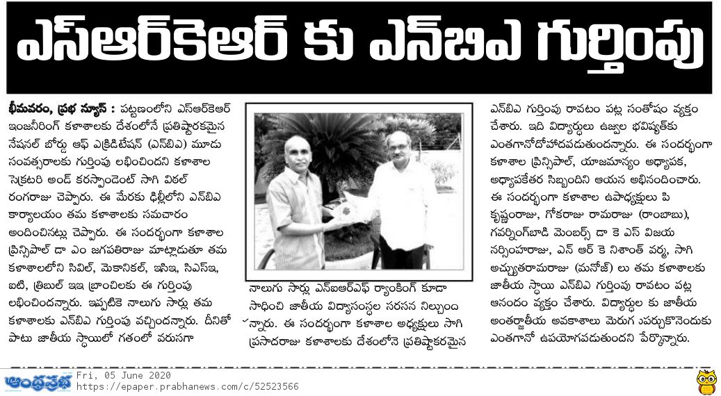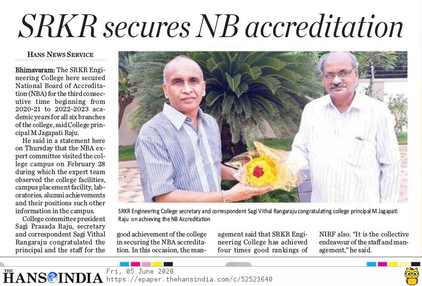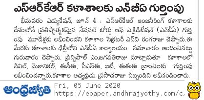 Based on the recommendation of the expert committee that conducted on-site evaluataion of the UG programs at SRKREC during 28th February and 1st March 2020,