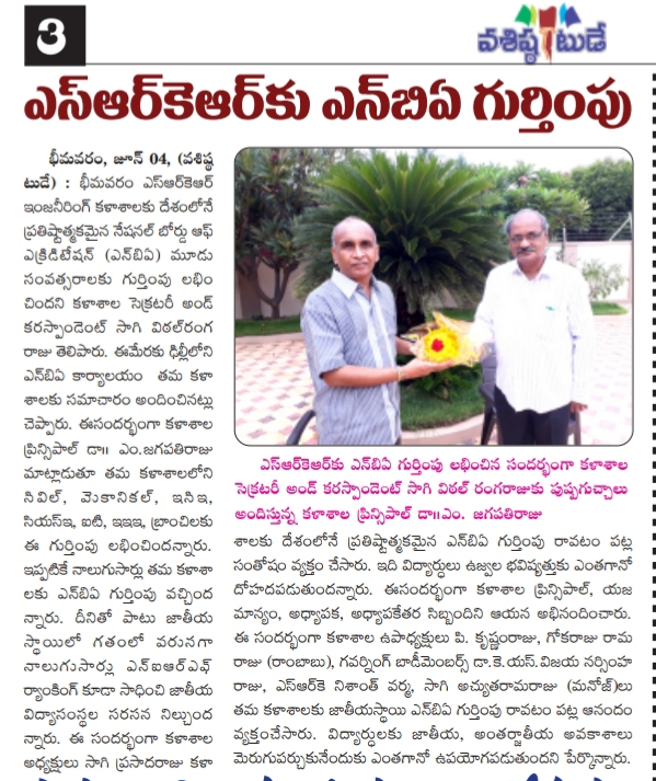 The management congratulated the principal, HODs, Teaching and Non-Teaching Staff for their efforts in getting the accreditation for all branches.